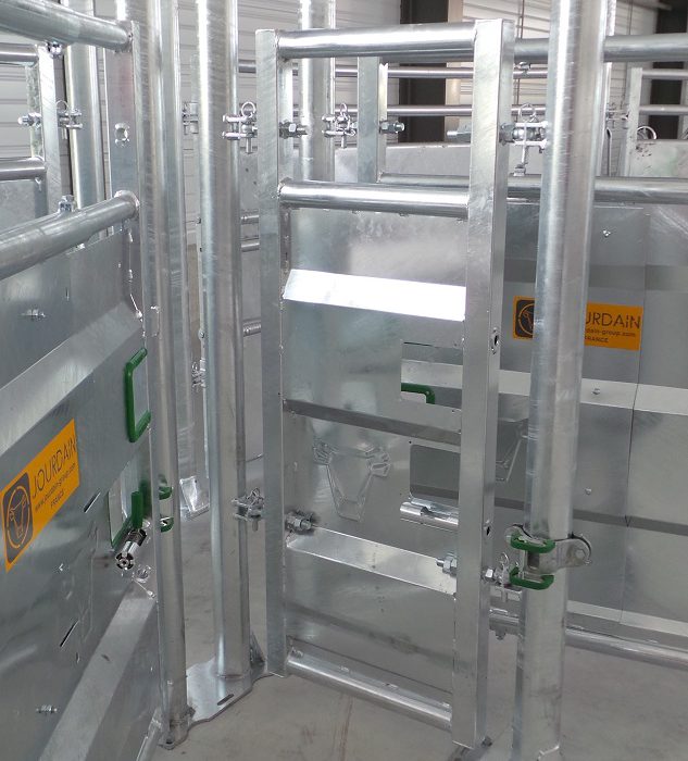 Small fixed sheeted metal gate, centre – post 0.88 m, gate height 1.6 m sheeted to 1.14 m.