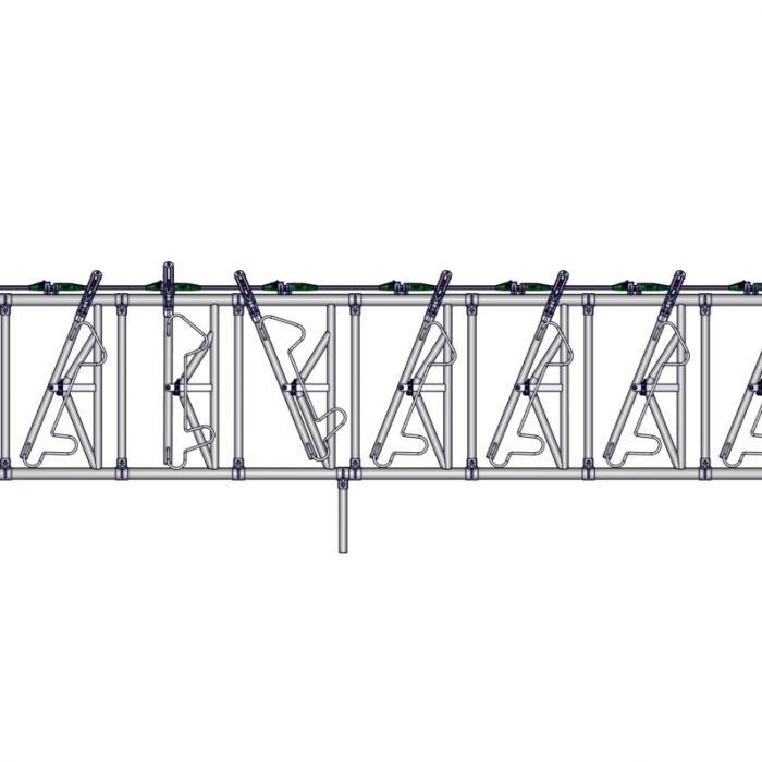 Cornadis avec axes coulissants en acier revêtus de polyamide choc ; bras mobile renforcé par bague anti-usure ; anti-passage de tête haut et bas et retour du collier grâce au système RAZ (remise à zéro). Fourni avec 4 embouts de réglage