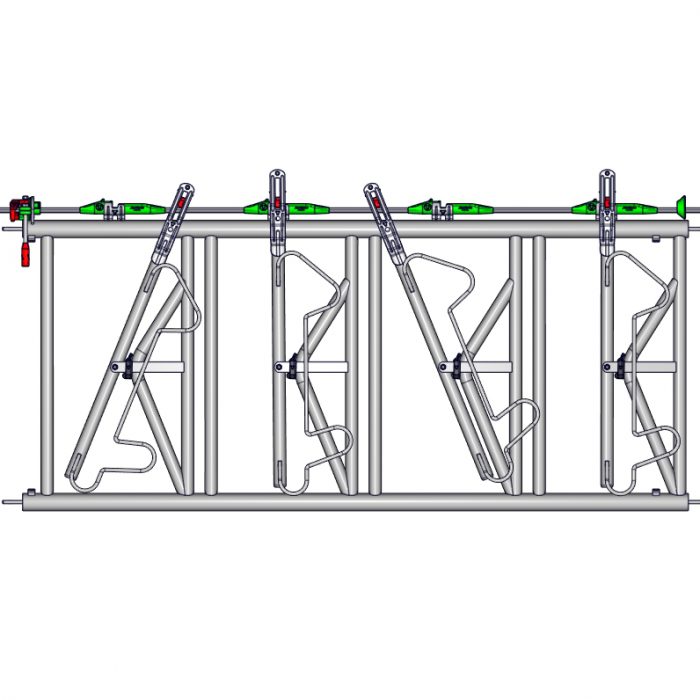 Le Cornadis SAFETY sur panneau est adapté aux troupeaux laitiers écornés ou aux races moyennement encornées. Il ne convient pas aux boeufs d’engraissement. Le dégagement en partie basse permet à l’éleveur de libérer plus facilement un animal tombé.